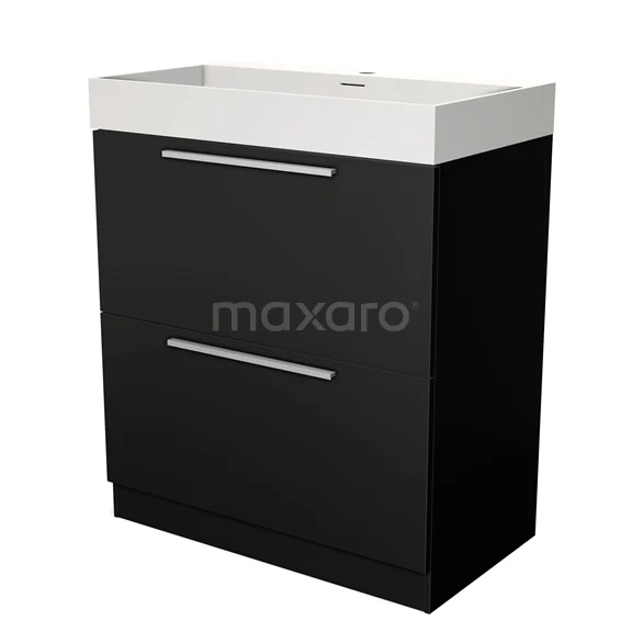 Modulo Bathroom furniture with sink | 80 cm Matte black Flat front Solid surface 2 high drawers standing drawers under each other