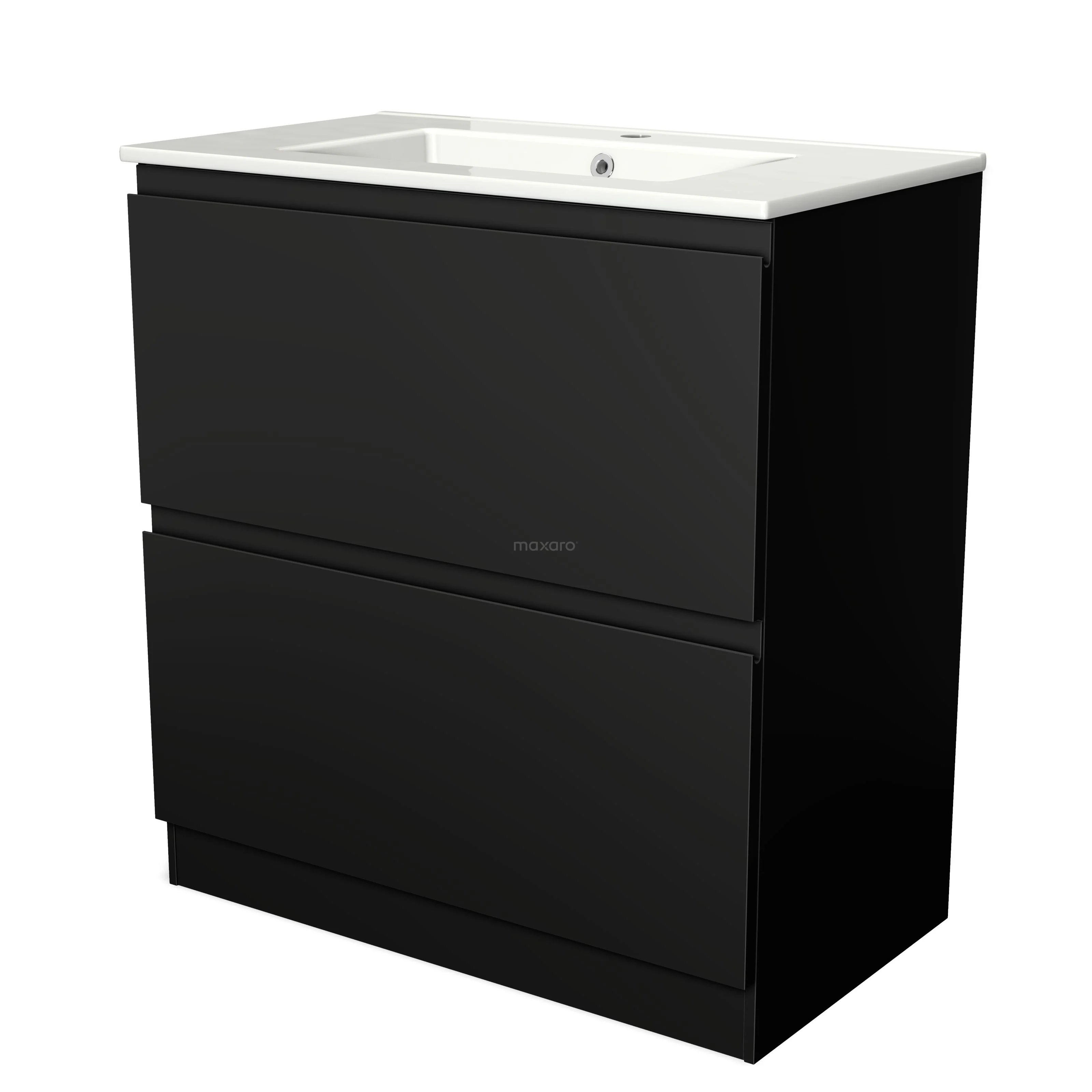Modulo Bathroom furniture with sink | 80 cm Matte black Handle-less front Ceramic 2 high drawers standing drawers under each other