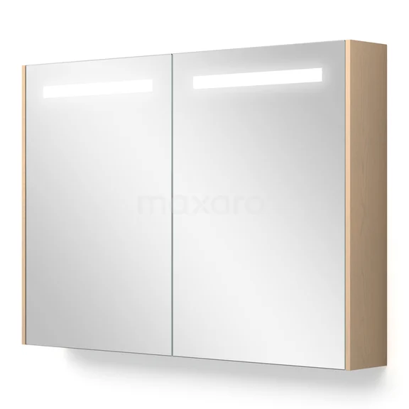 This stylish mirror cabinet has a rectangular design and is finished in natural oak. This colour perfectly matches your Modulo bathroom furniture and is a beautiful addition to your interior. The lighting gives the whole a cosy appearance and can be operated with a switch. Moreover, you can adjust the colour temperature to your liking.