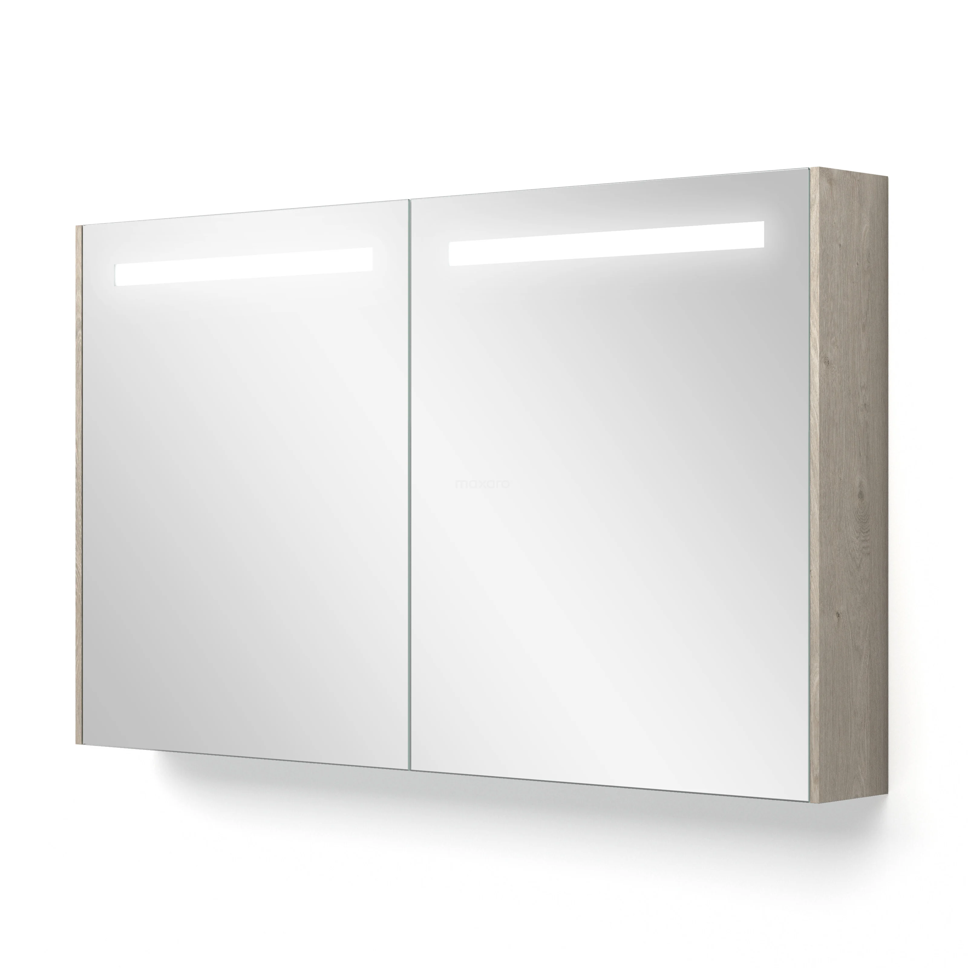 This stylish mirror cabinet has a rectangular design and is finished in light grey oak. This colour perfectly matches your Modulo bathroom furniture and forms a beautiful addition to your interior. The lighting gives the whole a cosy appearance and can be controlled with a switch. Additionally, you can adjust the colour temperature to your liking.