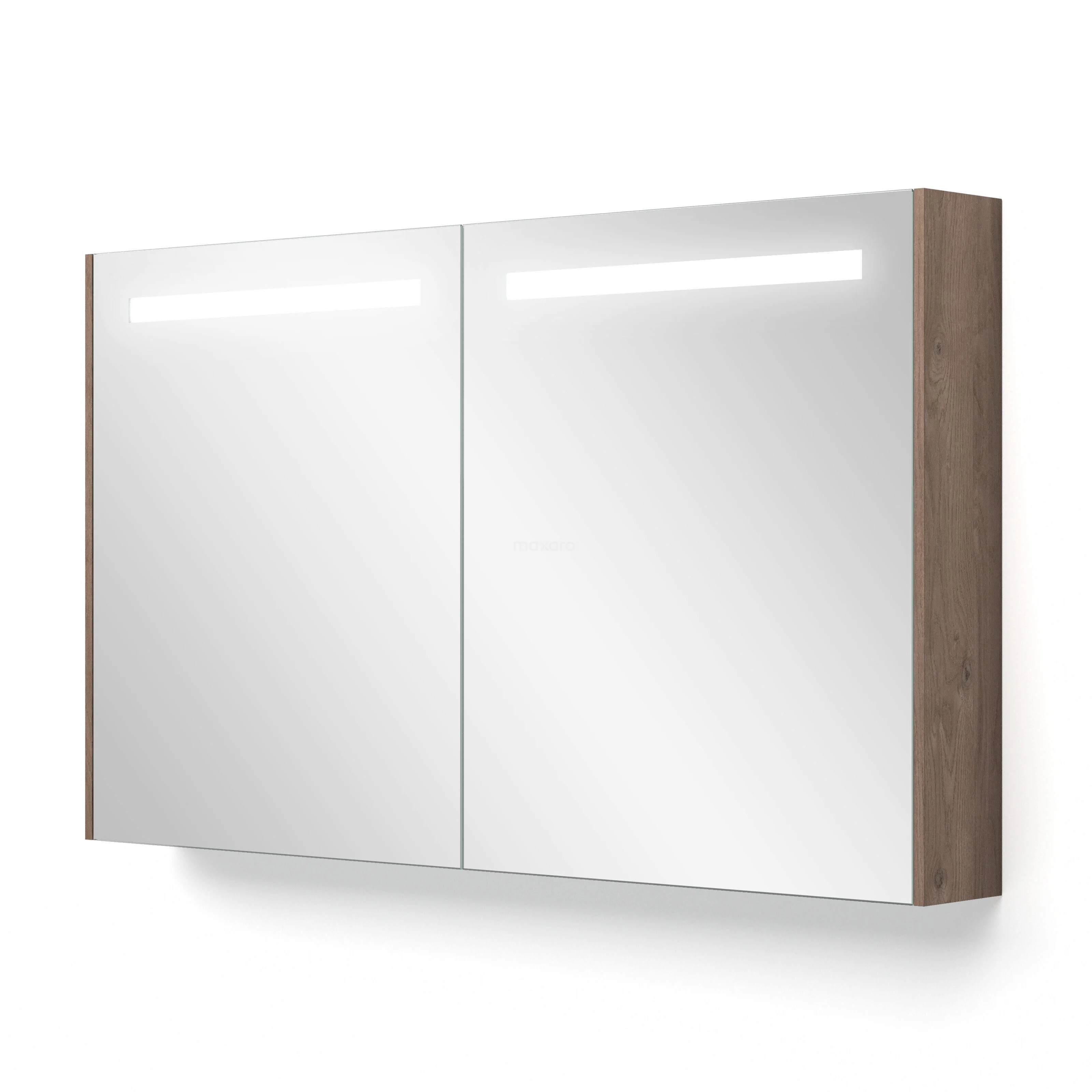This stylish mirror cabinet has a rectangular design and is finished in medium brown oak. This colour perfectly matches your Modulo bathroom furniture and forms a beautiful addition to your interior. The lighting gives the whole a cosy appearance and can be operated with a switch. You can also adjust the colour temperature to your liking.