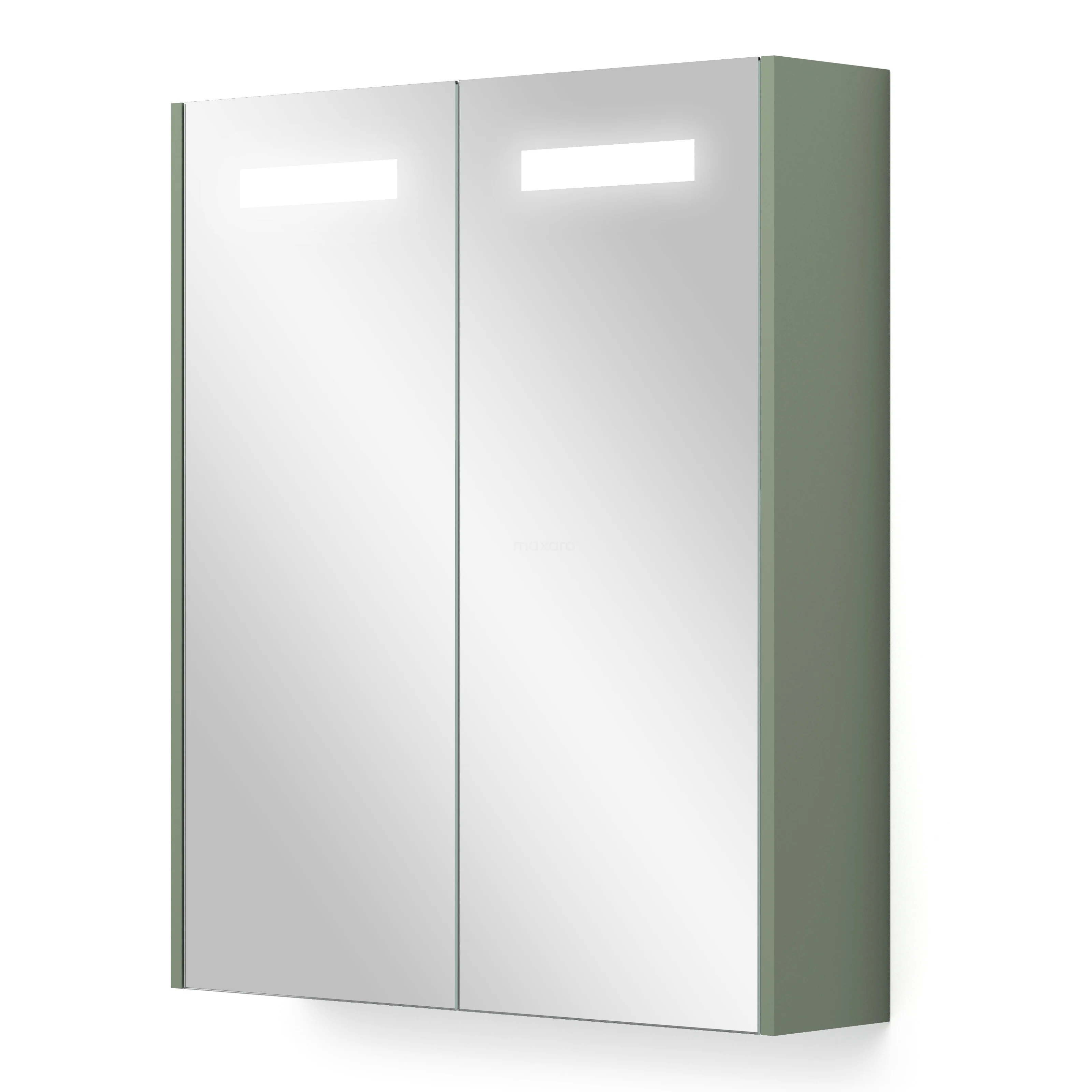 This stylish mirror cabinet has a rectangular design and is finished in sage green. This colour perfectly matches your Modulo bathroom furniture and is a beautiful addition to your interior. The lighting gives the whole a cosy appearance and can be operated with a switch. You can also adjust the colour temperature to your liking.