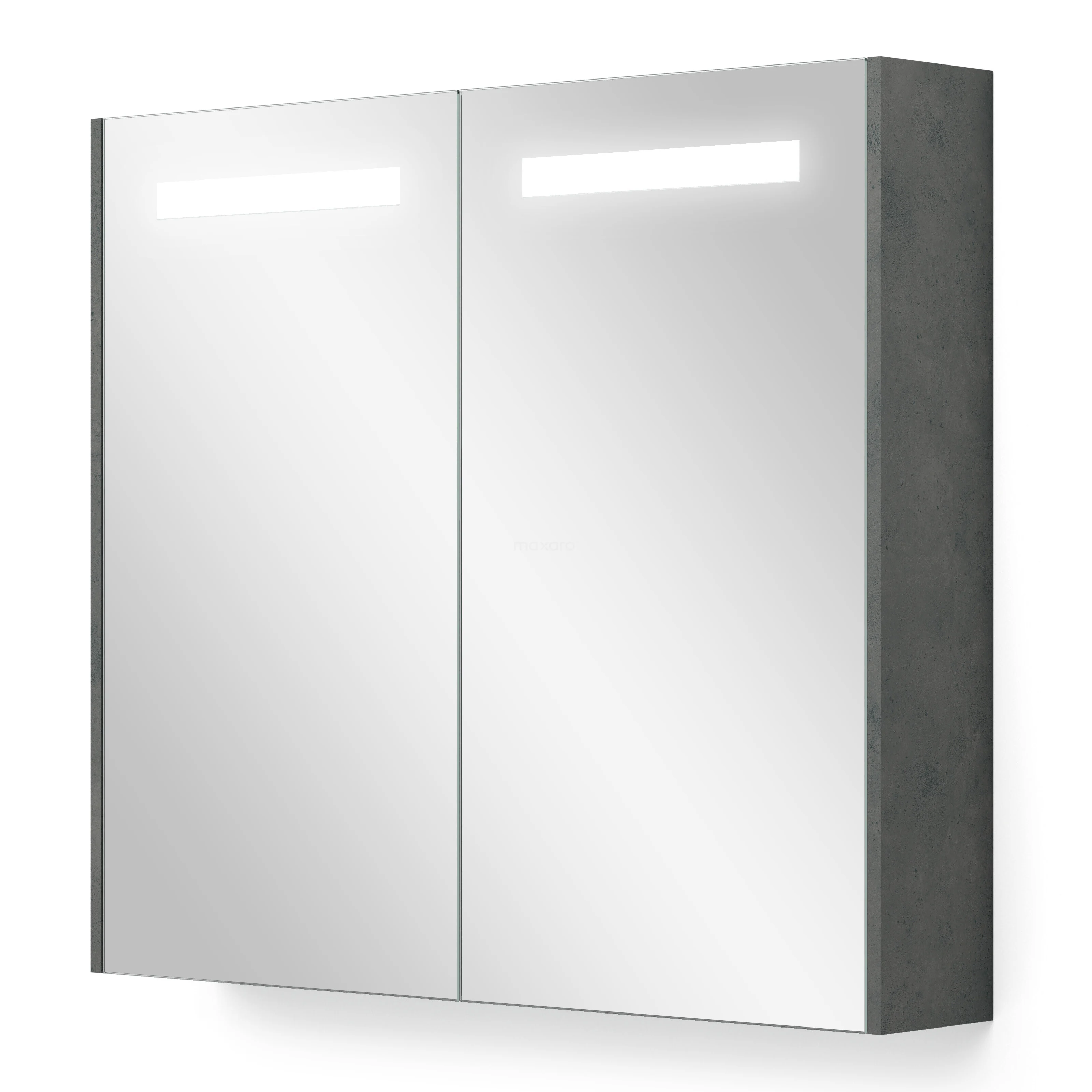 This stylish mirror cabinet has a rectangular design and is finished in dark grey concrete. This colour perfectly matches your Modulo bathroom furniture and forms a beautiful addition to your interior. The lighting gives the whole a cosy appearance and can be operated with a switch. Additionally, you can adjust the colour temperature to your liking.