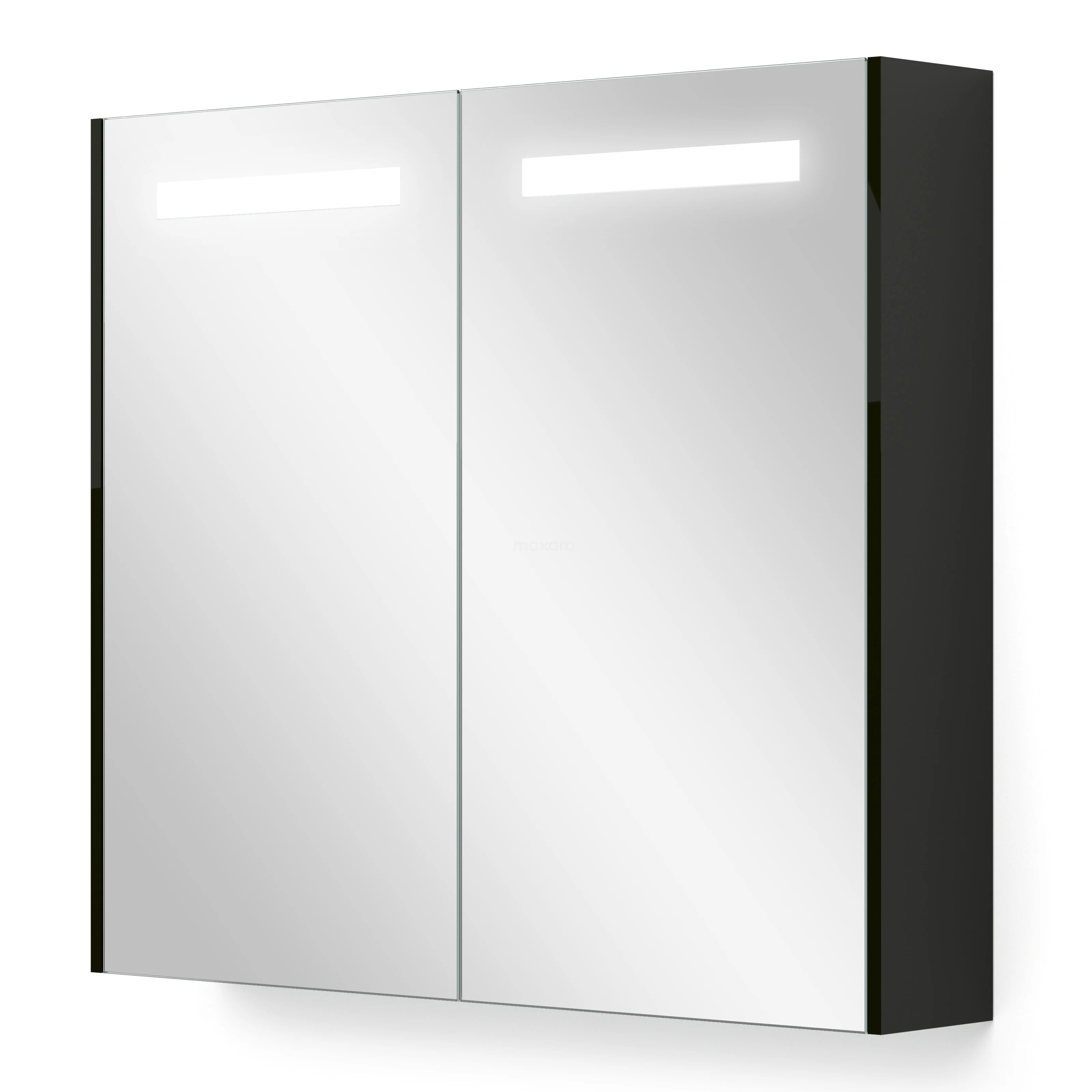 This luxury mirror cabinet of 80 cm from the Modulo series combines a mirror and practical storage space. The cabinet is equipped with two doors and offers ample space to neatly store all your toiletries. The doors feature soft close, allowing them to close silently, and thanks to the integrated handle, you can easily open and close them. The mirror heating in the doors prevents the mirror from fogging up after a warm bath or a relaxing shower.