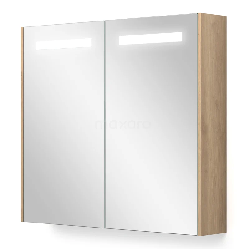 This stylish mirror cabinet has a rectangular design and is finished in light brown oak. This colour perfectly matches your Modulo bathroom furniture and forms a beautiful addition to your interior. The lighting gives the whole a cosy appearance and can be operated with a switch. Additionally, you can set the colour temperature to your liking.