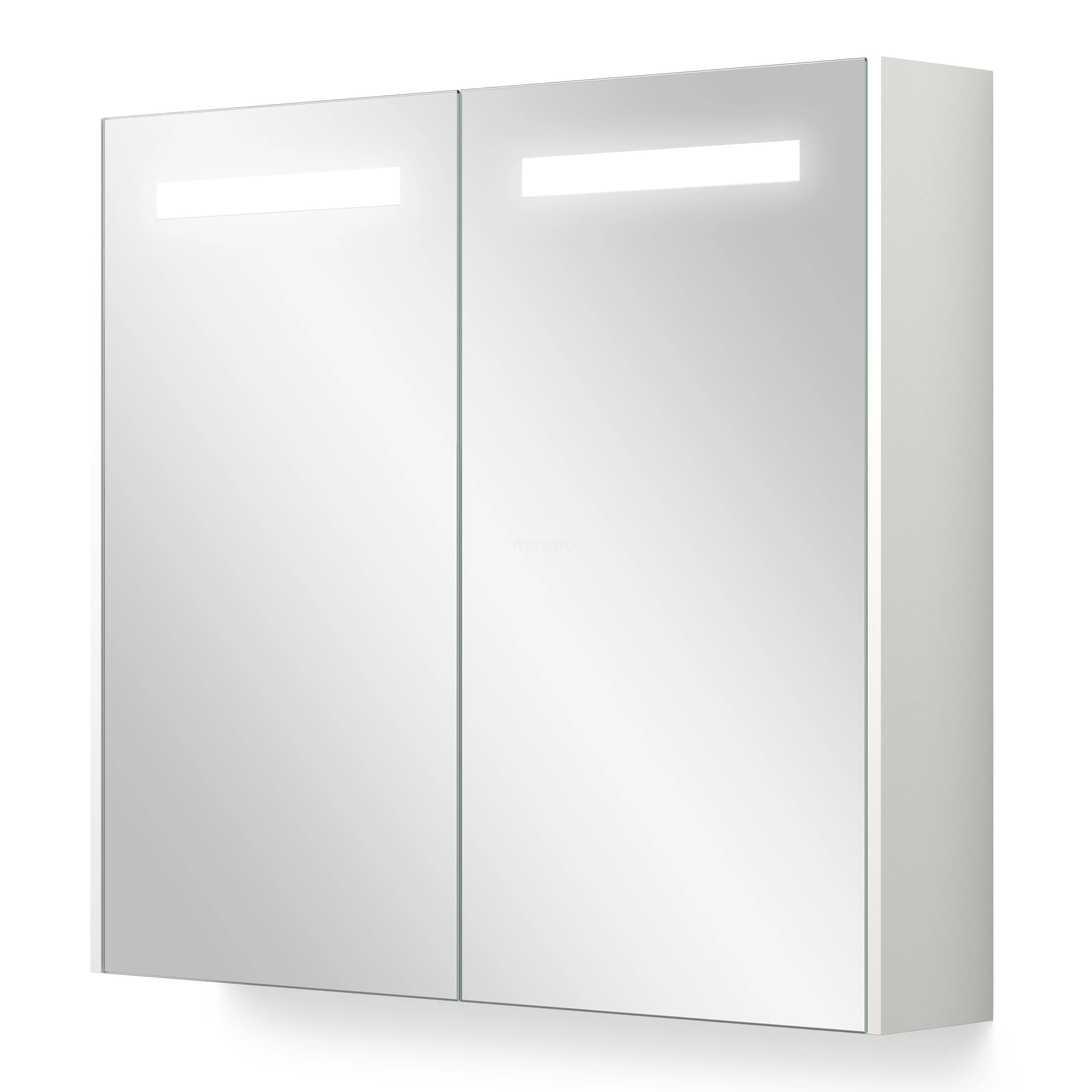 This luxury mirror cabinet of 80 cm from the Modulo series combines a mirror and practical storage space. The cabinet is equipped with two doors and offers ample space to neatly store all your toiletries. The doors feature soft close, allowing them to close silently, and thanks to the integrated handle, you can easily open and close them. The mirror heating in the doors prevents the mirror from steaming up after a warm bath or a relaxing shower.