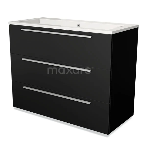 Maxaro bathroom units are available in white, grey oak, brown, grey oak and black. These have a matte finish. In addition, white bathroom units are also available in high-gloss. White brings a fresh character to any bathroom. For a natural ambience, the oak colour is perfect. Prefer a tougher look? Check out the black and grey bathroom units 100 cm wide.