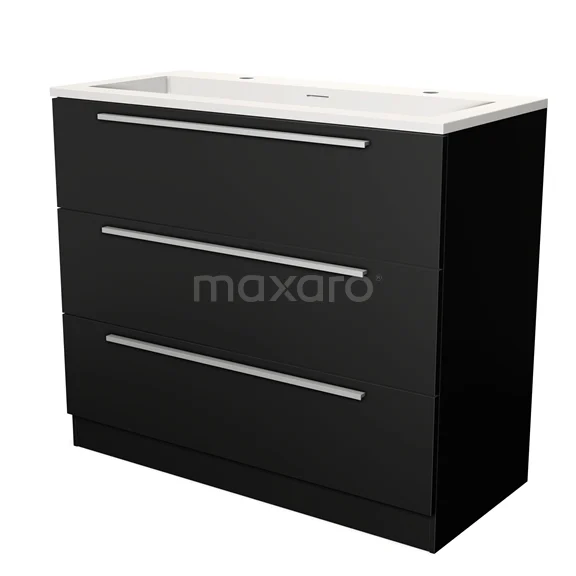 Maxaro bathroom units are available in white, grey oak, brown, grey oak and black. These have a matte finish. In addition, white bathroom units are also available in high-gloss. White brings a fresh character to any bathroom. For a natural ambience, the oak colour is perfect. Prefer a tougher look? Check out the black and grey bathroom units 100 cm wide.