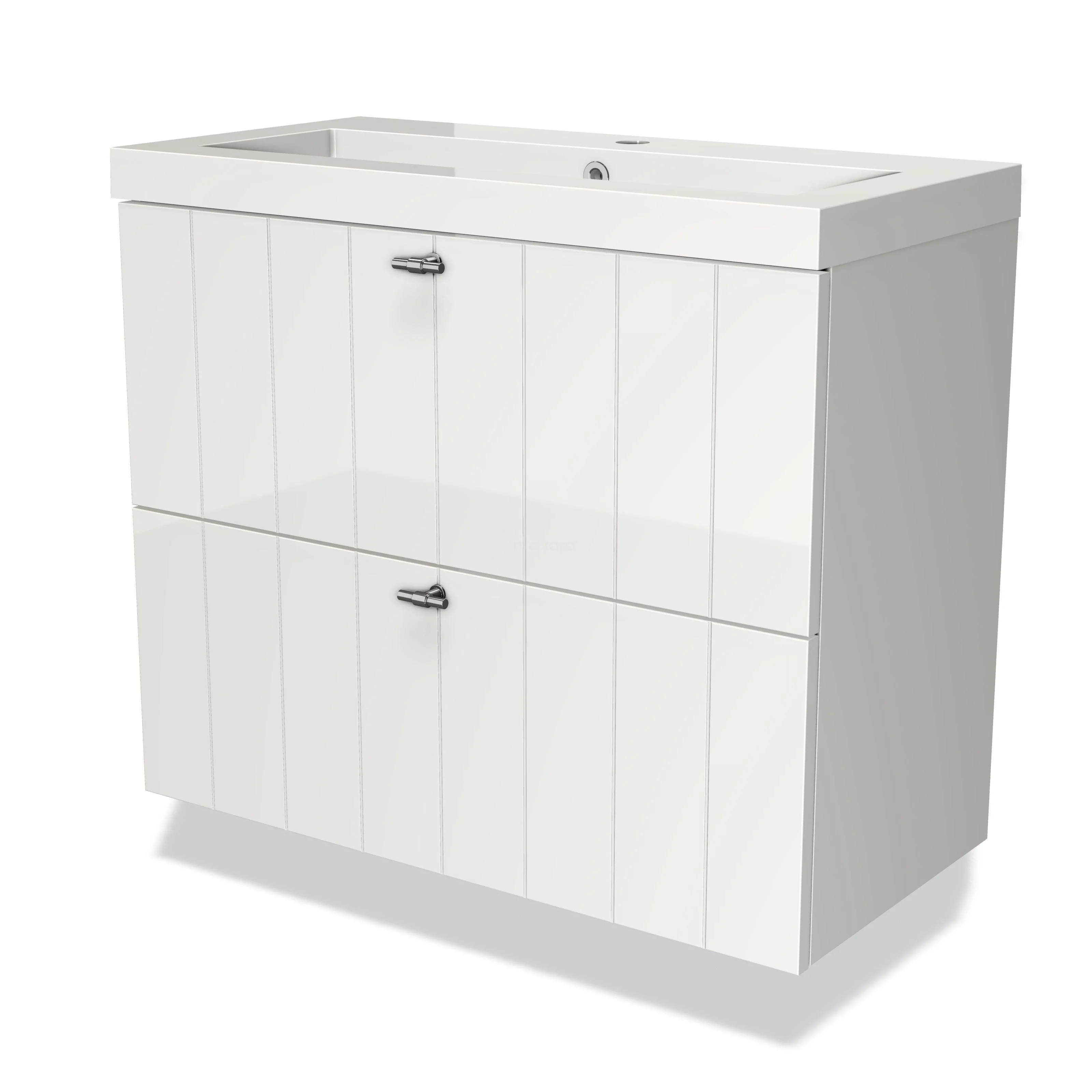 In our wide range, you will find 80 cm bathroom units with different types of base cabinets. You can choose between one or two drawers, or doors with a handy soft-close system. The drawer front is finished in various finishes including slat, frame, flat and handleless. So you will always find a maximally successful match. Complete your unit with square or rounded handles. View the range online or visit one of our megashowrooms. At Maxaro you will always find the perfect match for your dream bathroom.