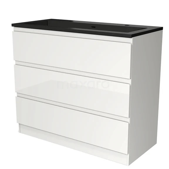 Modulo Bathroom furniture with sink | 100 cm High-gloss white Handle-less front Quartz 3 standing drawers
