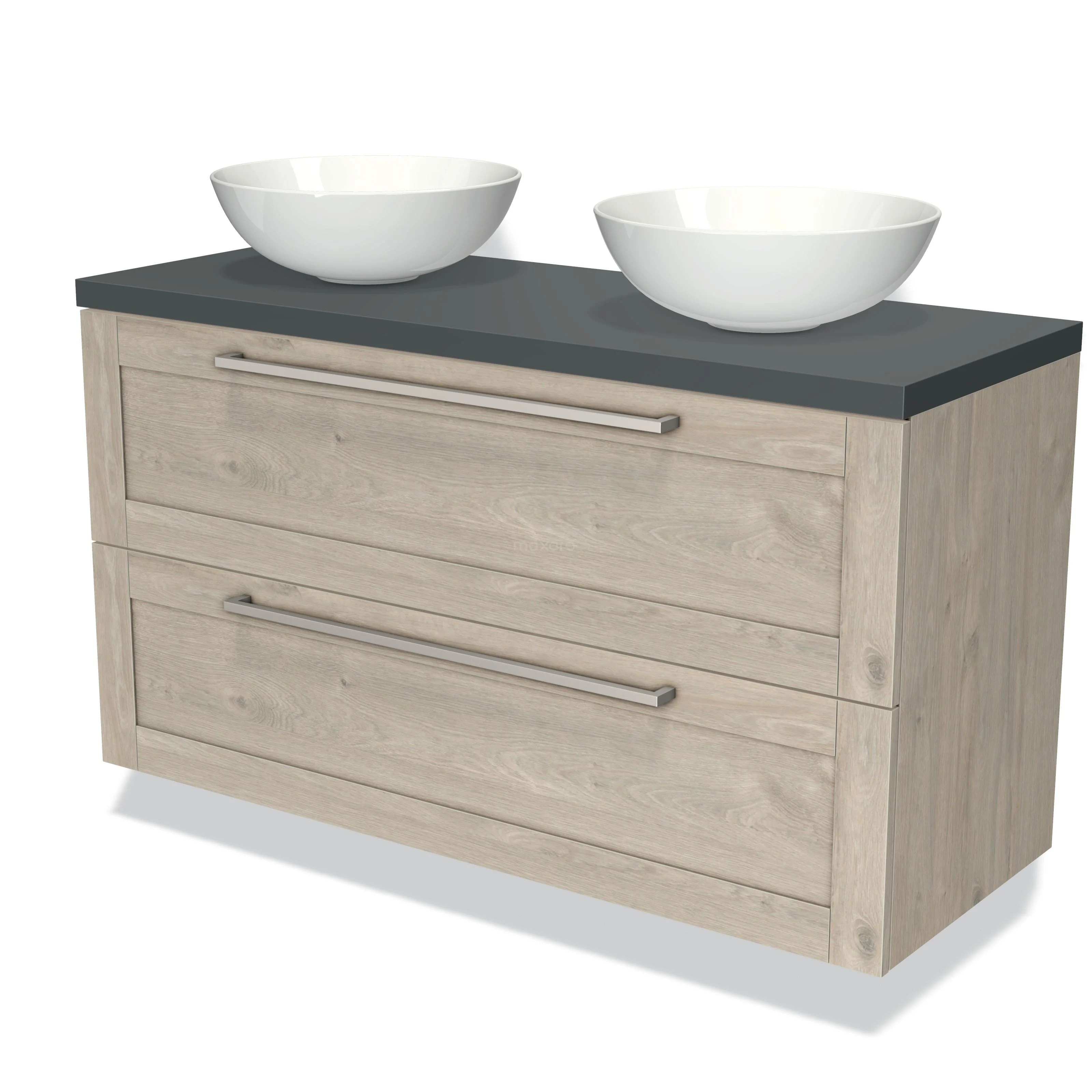 Our Oak bathroom units are available in different series: Oaks, Modulo+, Modulo+ Slim and Canto. The solid oak bathroom units can be found within the Oaks series. These are robust units in upright models. In the Canto series, you will find hanging units in grey oak. For natural Oak, you will succeed to the max with a hanging unit from the Modulo+ or Modulo+ Slim series. All these finishes have a matte finish, giving them a very calm and natural look.