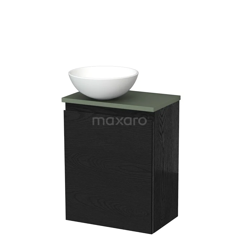 Countertop wash basin | 41 cm Black oak Handleless front Matte white Ceramic basin Sage green worktop
