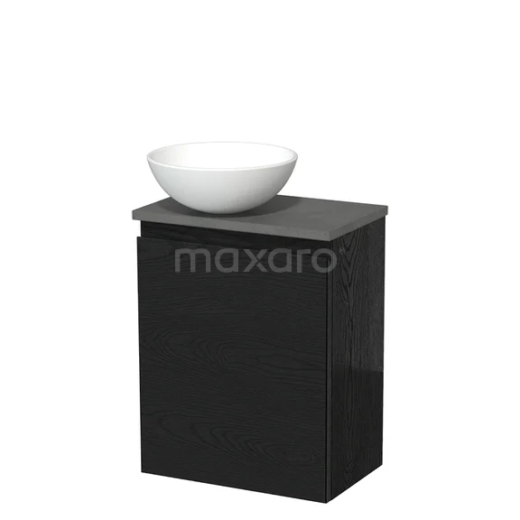 Countertop wash basin | 41 cm Black oak Handleless front Matte white Ceramic worktop Dark grey concrete Fronts