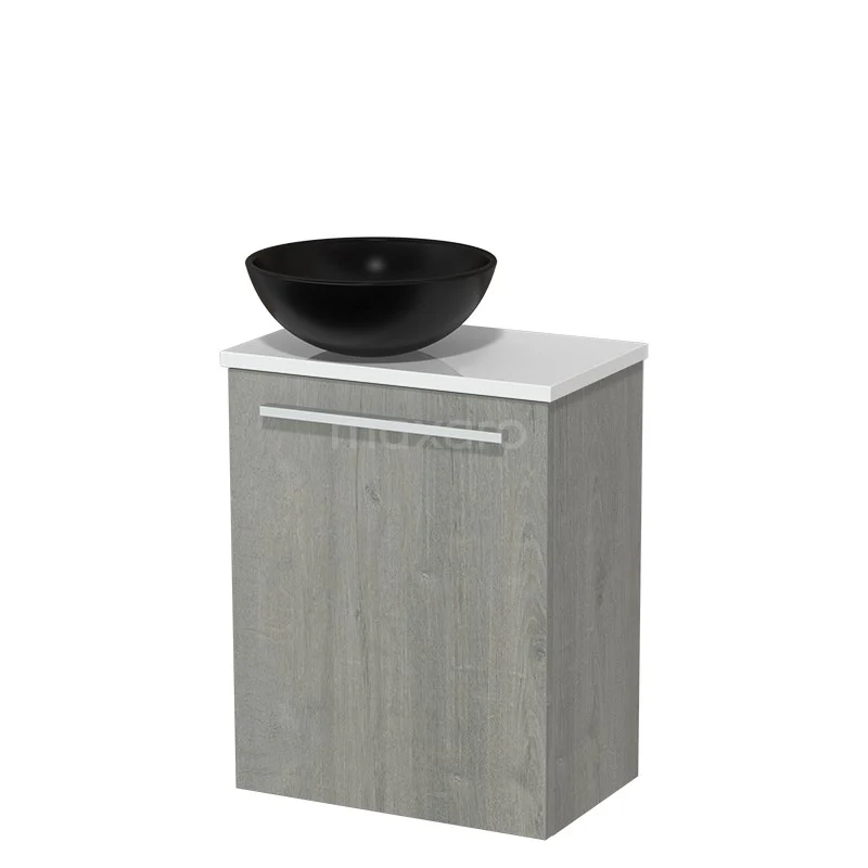 Countertop wash basin | 41 cm Grey oak Flat front Matte black Ceramic worktop High-gloss white worktop