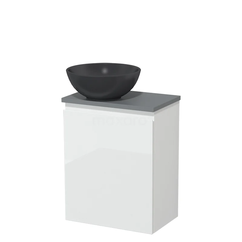 Countertop wash basin | 41 cm High-gloss white Handleless front Matte black Quartz basin Mid-grey worktop