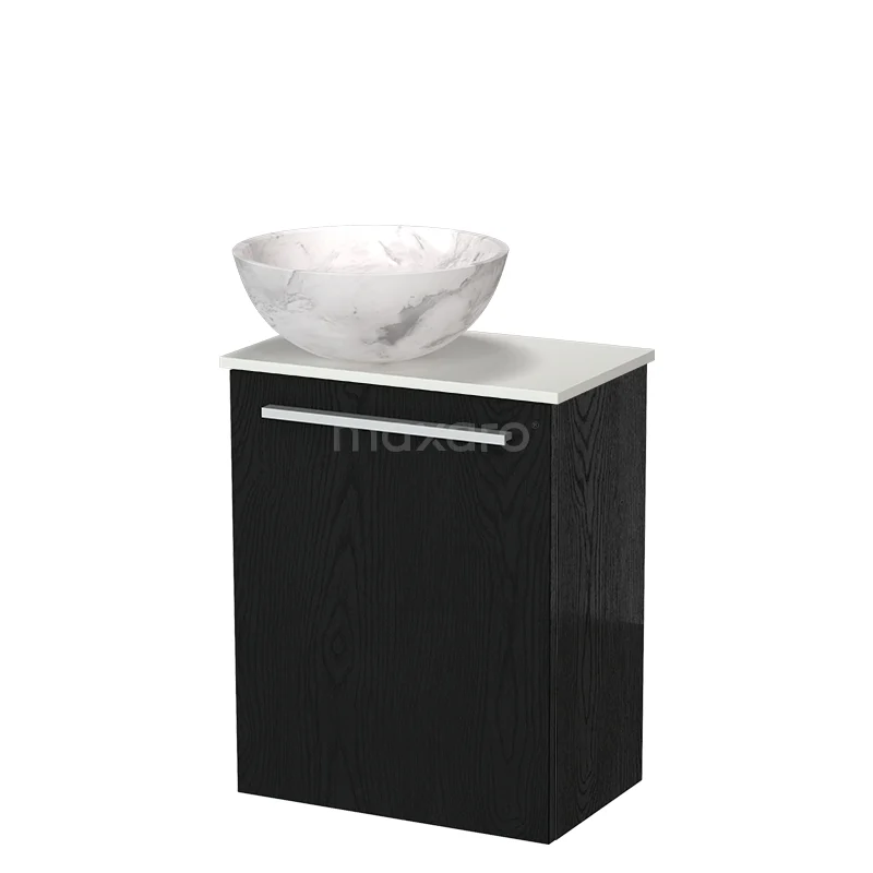 Modulo Pico Toilet furniture with Basin | 41 cm Black oak Flat front Natural stone basin Solid surface washbasin top