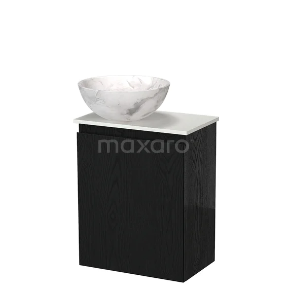 Modulo Pico Toilet Furniture with Basin | 41 cm Black Oak Handleless Front Natural Stone Basin Solid Surface Washbasin Top