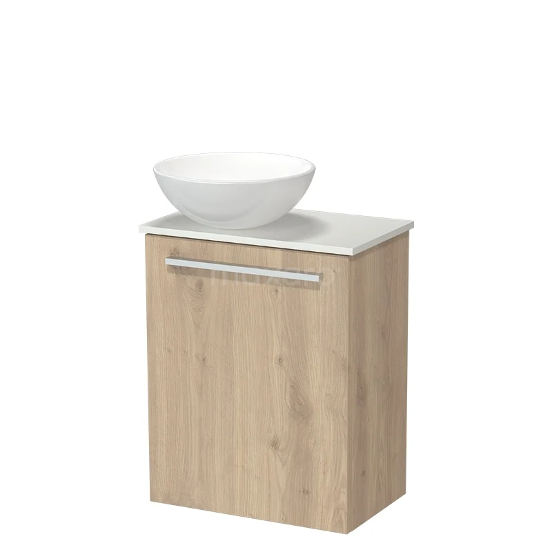 Modulo Pico Toilet furniture with Basin | 41 cm Light brown oak Flat front Ceramic basin Solid surface washbasin top
