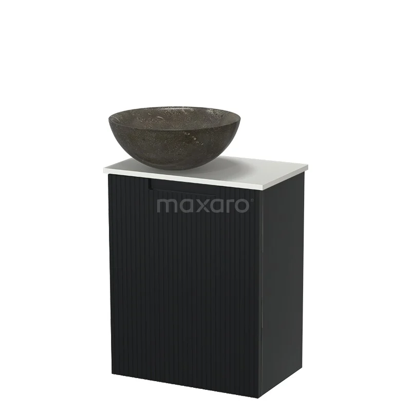 Modulo Pico Toilet furniture with Basin | 41 cm Matt black Line front Natural stone basin Solid surface washbasin top