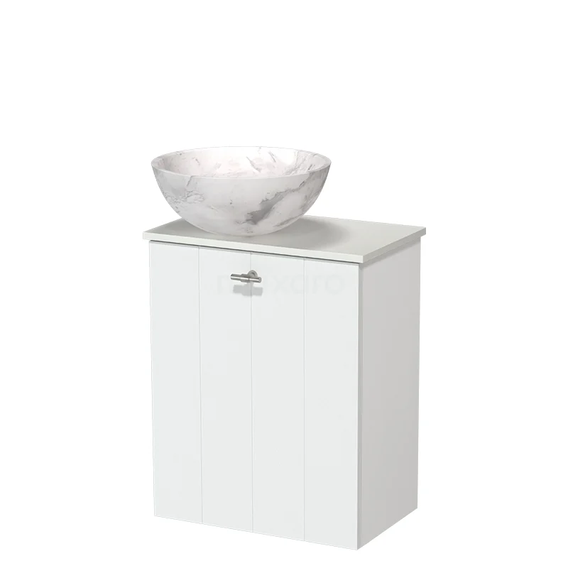 Modulo Pico Toilet furniture with Basin | 41 cm Matt white Slatted front Natural stone basin Solid surface washbasin top