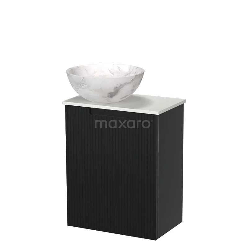 Modulo Pico Toilet furniture with Basin | 41 cm Matte black Line front Natural stone basin Solid surface washbasin top