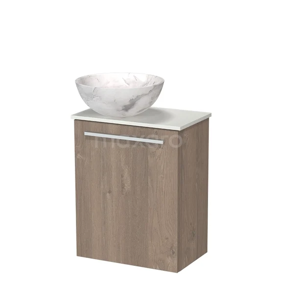 Modulo Pico Toilet Furniture with Basin | 41 cm Medium Brown Oak Flat Front Natural Stone Basin Solid Surface Washbasin Top