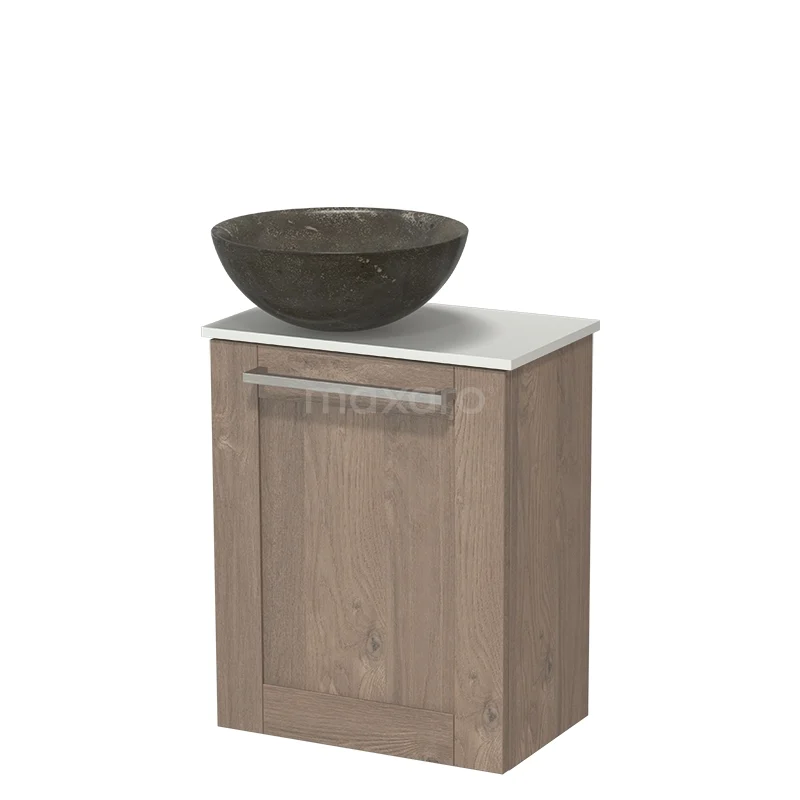 Modulo Pico Toilet Furniture with Basin | 41 cm Mid-brown oak Frame front Natural stone basin Solid surface washbasin top
