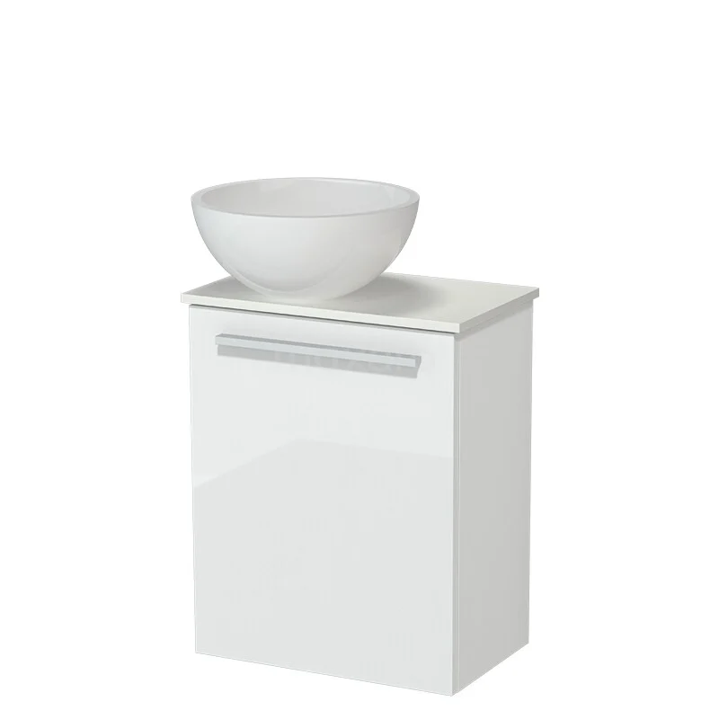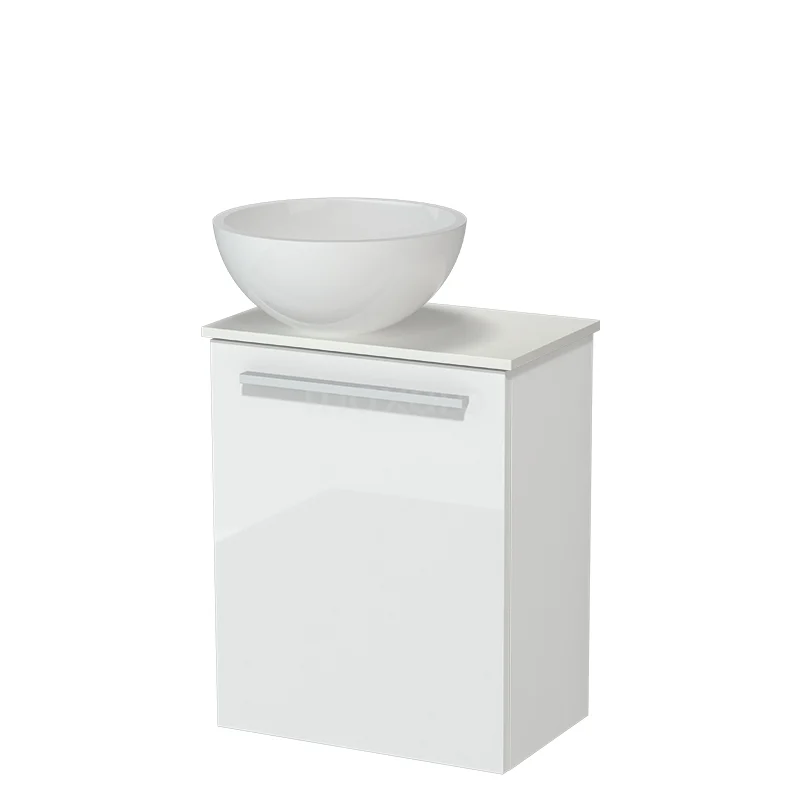 Modulo Pico Toilet furniture with Washbasin | 41 cm High gloss white Flat front Mineral marble washbasin Solid surface sink top