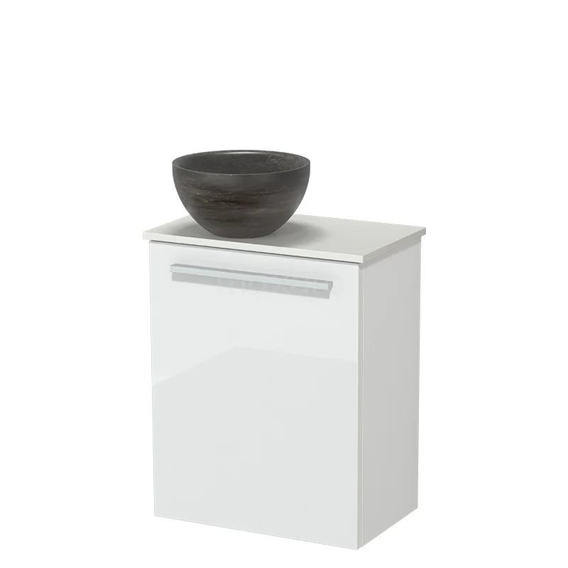 Modulo Pico Toilet furniture with Washbasin | 41 cm High gloss white Flat front Natural stone washbasin Solid surface washbasin top