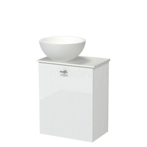 Modulo Pico Toilet furniture with Washbasin | 41 cm High gloss white Slat front Solid surface washbasin Solid surface washbasin top