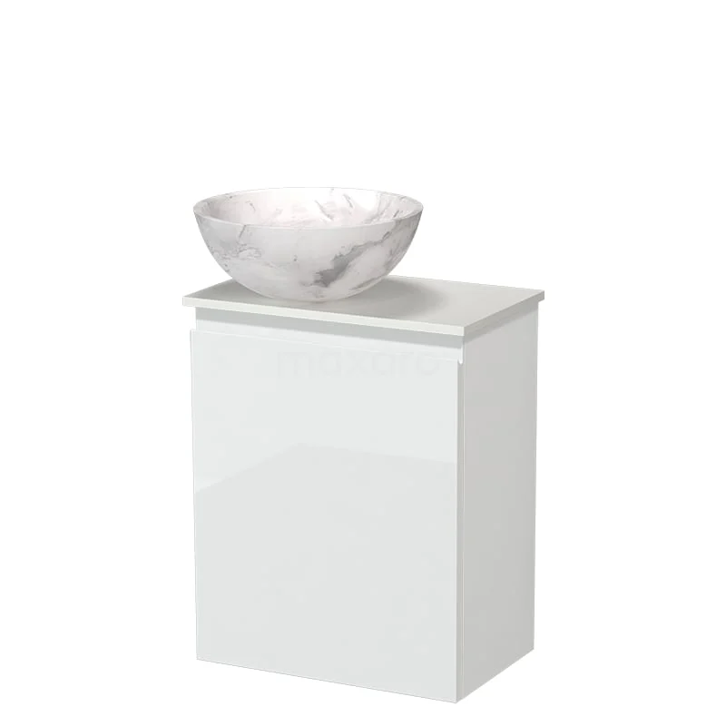 Modulo Pico Toilet Unit with Basin | 41 cm High Gloss White Handleless Front Natural Stone Basin Solid Surface Washbasin Top