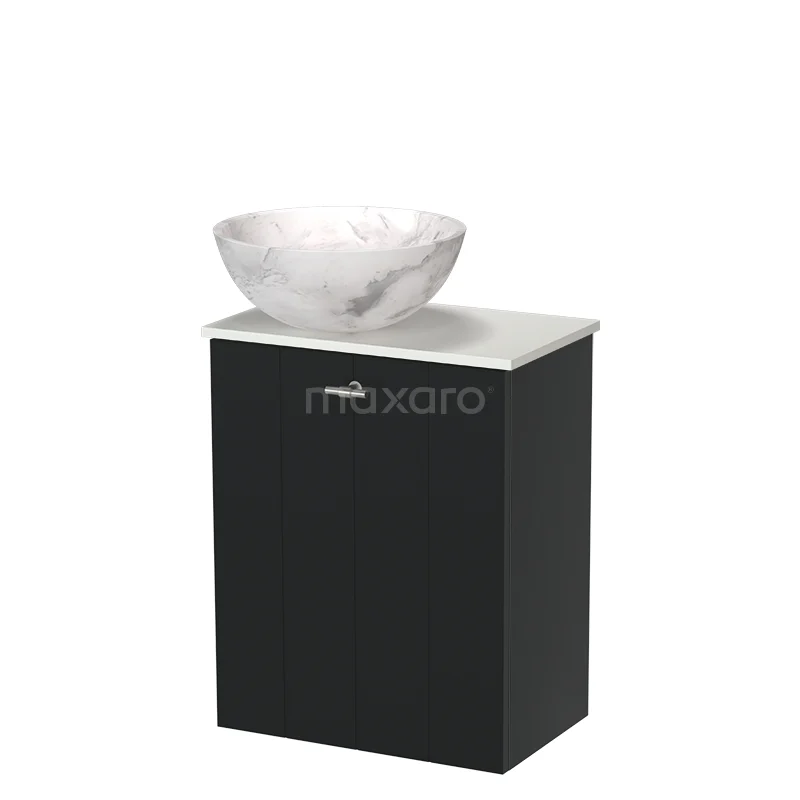 Modulo Pico Toilet unit with Basin | 41 cm Matte black Laminate front Natural stone basin Solid surface washbasin top