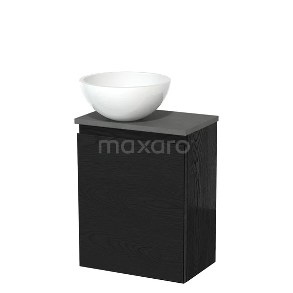 Toilet unit with countertop wash basin | 41 cm Black oak Handleless front High-gloss white Mineral marble worktop Dark grey concrete top