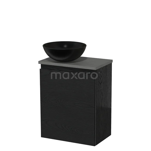 Toilet unit with countertop wash basin | 41 cm Black oak Handleless front Matte black Ceramic basin Dark grey concrete worktop