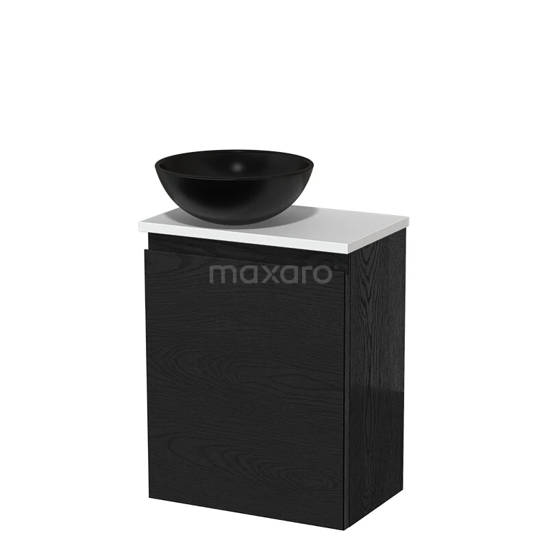 Toilet unit with countertop wash basin | 41 cm Black oak Handleless front Matte black Ceramic basin Matte white worktop
