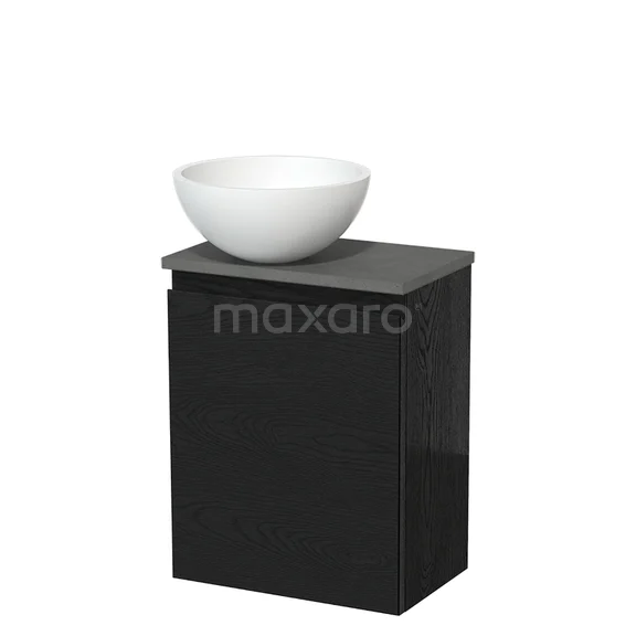 Toilet unit with countertop wash basin | 41 cm Black oak Handleless front Matte black Solid surface wash basin Dark grey concrete worktop