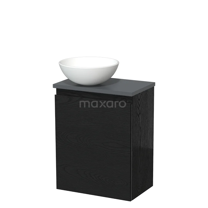 Toilet unit with countertop wash basin | 41 cm Black oak Handleless front Matte white Ceramic wash basin Dark grey worktop