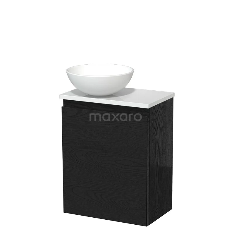 Toilet unit with countertop wash basin | 41 cm Black oak Handleless front Matte white Ceramic worktop High-gloss white worktop
