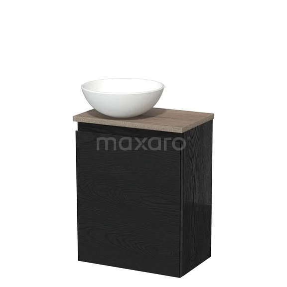 Toilet unit with countertop wash basin | 41 cm Black oak Handleless front Matte white Ceramic worktop Oak worktop