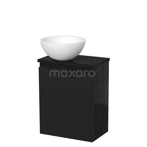 Toilet unit with countertop wash basin | 41 cm Black oak Handleless front Matte white Solid surface wash basin Black oak worktop