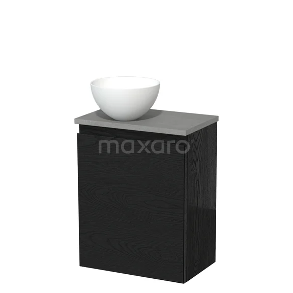 Toilet unit with countertop wash basin | 41 cm Black oak Handleless front Matte white Solid surface wash basin Light grey concrete worktop