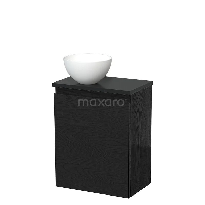 Toilet unit with countertop wash basin | 41 cm Black oak Handleless front Matte white Solid surface wash basin Matte black worktop