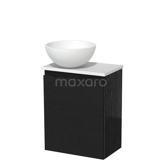 Toilet unit with countertop wash basin | 41 cm Black oak Handleless front Matte white Solid surface wash basin Matte white worktop