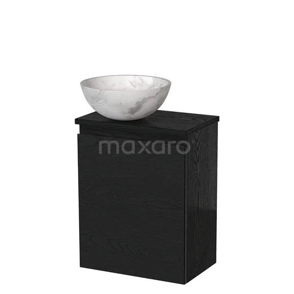 Toilet unit with countertop wash basin | 41 cm Black oak Handleless front White marble Natural stone worktop Black oak worktop