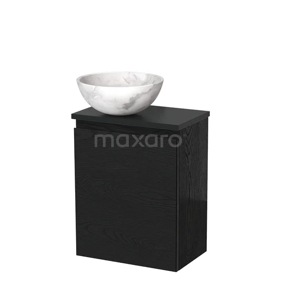 Toilet unit with countertop wash basin | 41 cm Black oak Handleless front White marble Natural stone worktop Matte black worktop