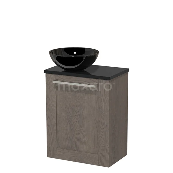 Toilet unit with countertop wash basin | 41 cm Dark brown oak Fronts High-gloss black Ceramic countertop wash basin High-gloss black worktop