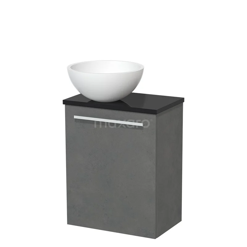 Toilet unit with countertop wash basin | 41 cm Dark grey concrete Flat front Matte white Solid surface wash basin High-gloss black worktop