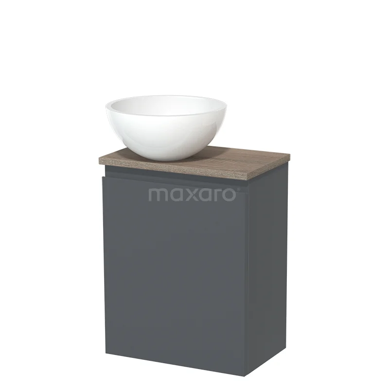 Toilet unit with countertop wash basin | 41 cm Dark grey Handleless front High-gloss white Mineral marble countertop wash basin Oak worktop