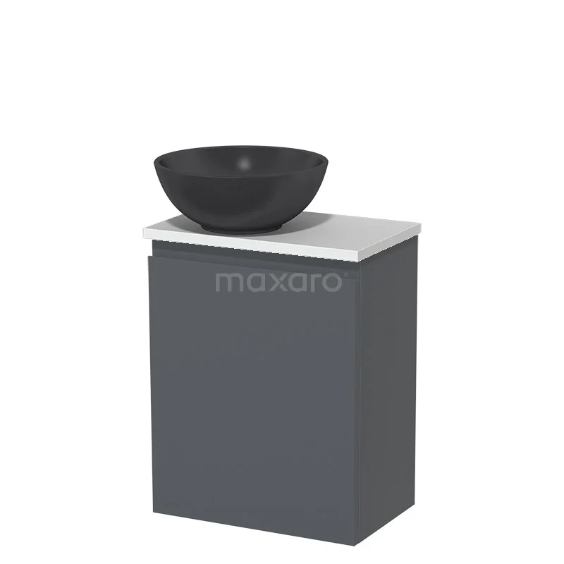 Toilet unit with countertop wash basin | 41 cm Dark grey Handleless front Matte black Quartz wash basin Matte white worktop