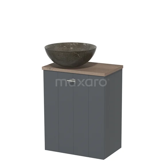 Toilet unit with countertop wash basin | 41 cm Dark grey Lamel front Blue stone Natural stone countertop wash basin Mid brown oak worktop